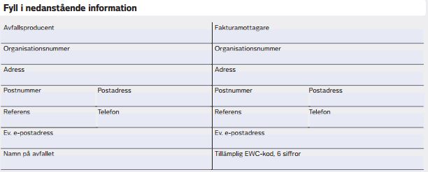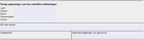 - Om det finns övriga upplysningar som kan vara av värde för oss att känna till om avfallet, fyll i det också. Det kan till exempel röra arbetsmiljö eller miljöaspekter.